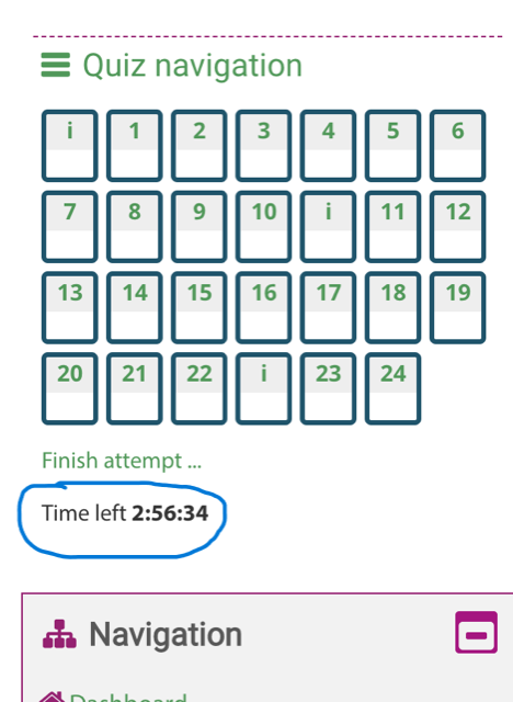 The timer can be seen on the right hand side of the screen under 'Quiz navigation'